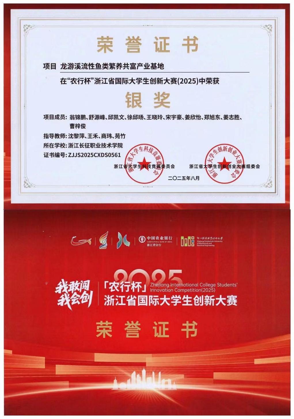 在近期落幕的"农行杯"浙江省国际大学生创新大赛(2025)决赛中,浙江长征职业技术学院凭借项目《龙游溪流性鱼类繁养共富产业基地》脱颖而出,首次入围省级决赛即斩获银奖,创下学校在此类赛事中的历史最佳成绩。