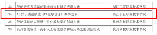 近日,我校计算机与信息技术学院申报的“AI知识图谱赋能《C#程序设计》教学改革”,被浙江省教育技术中心正式收录为数字教育典型应用场景重点培育案例。作为展示全省教育数字化改革成果的重要窗口,浙江省教育技术中心数字教育体验中心此次收录我校案例,不仅是对我校教学改革工作的肯定,也为我校推动教育教学数字化转型提供了重要契机。