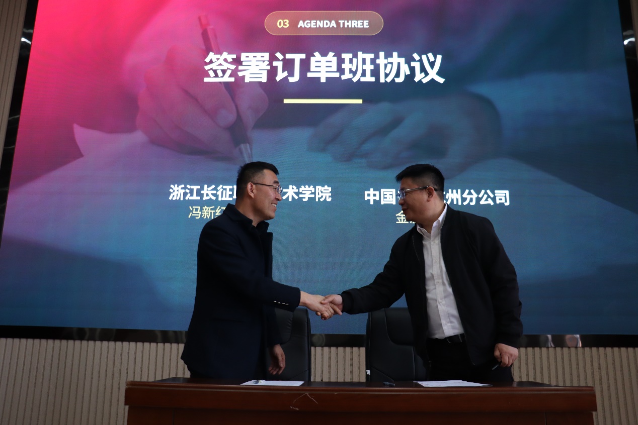 在与会嘉宾的见证下,冯新红副校长与金波总经理助理共同签署了《订单班协议》。