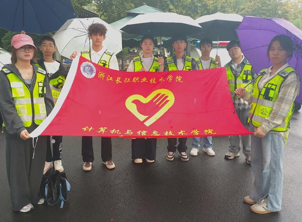 “情深深雨蒙蒙,多少楼台烟雨中”。10 月 18 日的西湖断桥,恰是这般诗意。当日下午,计信学院志愿者以 “西子义警” 身份齐聚于此,在细雨中传递温暖。