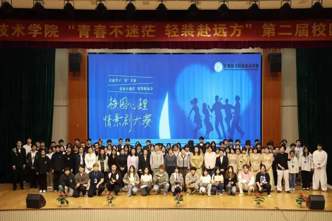 为丰富校园文化生活,关注学生心理健康,引导青年学子正确面对成长困惑、拥抱青春美好,4月13日晚,计算机与信息技术学院“青春不迷茫,轻装赴远方”第二届校园心理情景剧大赛在第一报告厅圆满落幕。本次大赛以戏剧为载体,聚焦青春成长中的心理话题,为全院学子呈现了一场兼具观赏性与教育意义的心灵盛宴。
