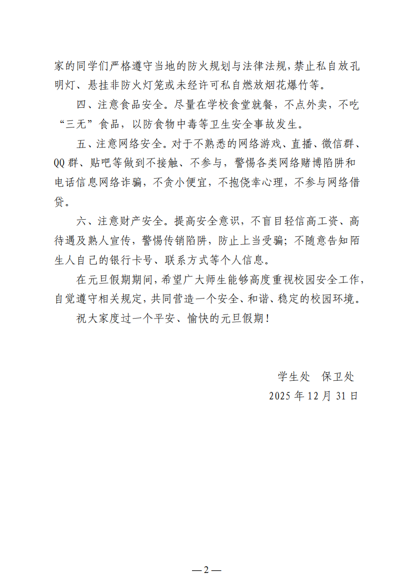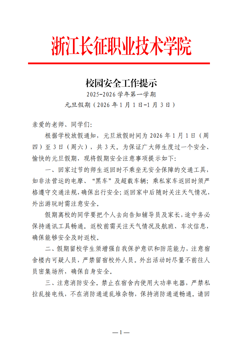 校园安全工作提示(元旦假期1.1-1.3)