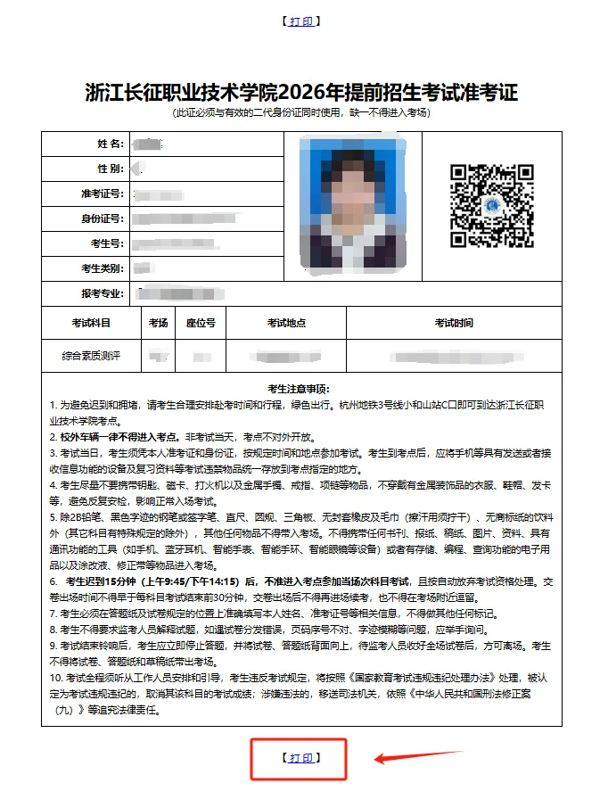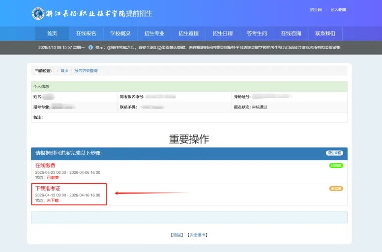 学校2026年高职提前招生准考证打印时间为4月13日9:00-4月16日16:00,具体操作步骤如下: